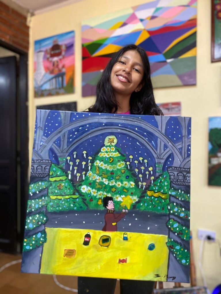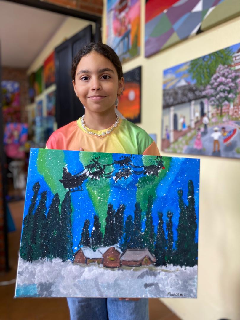 La muestra contó con la participación de 40 alumnos, entre niños y adolescentes, quienes presentaron una variada selección de obras elaboradas durante su proceso formativo en la Academia. El público disfrutó de piezas en múltiples técnicas y estilos, inspiradas en motivos navideños, que destacaron por su riqueza cromática, composición y diversidad de lenguajes visuales.